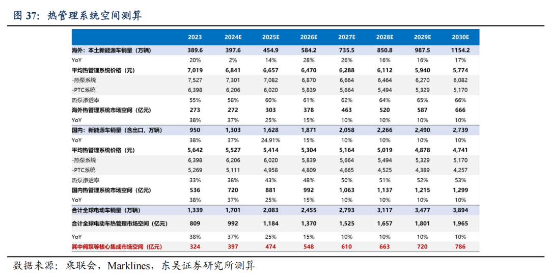 热泵渗透率近40%,24年整体平稳,我们预计未来有望提升至50%+:根据Marklines数据,21年热泵渗透率为13%,22年为24%,23年突破30%,24年基本维持35-40%,其中纯电渗透率50%+。