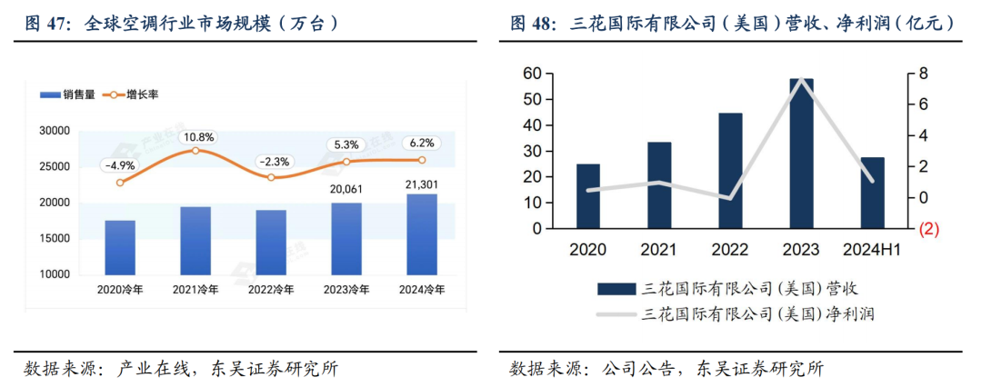 国内:以旧换新政策推动需求增长。2024年以来,以旧换新政策加码,刺激存量空调更新,三花智控凭技术壁垒在饱和市场巩固份额,同时洗碗机、中央空调等增量市场潜力大,其关键部件有望带动营收增长。