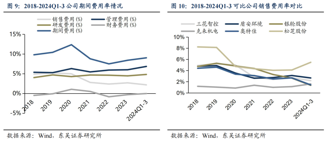 盈利能力保持稳健,优于同业公司。整体来看,公司毛利率长期稳定在25-30%,2024Q1-3毛利率达27.7%,同比提升0.2pct,与同业公司相比,公司盈利能力位于行业前列。