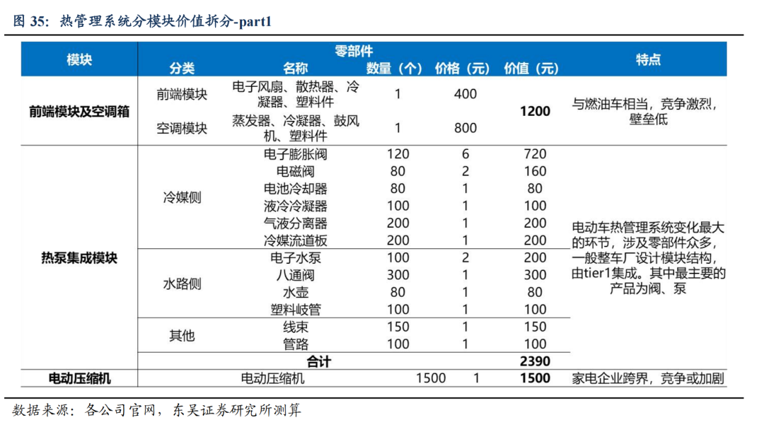 3.2. 热管理价值量:热泵集成模块价值量高,三花聚焦阀&泵&集成模块